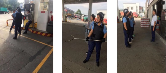 最終在大家的通力配合下,員工們成功將歹徒逼至加油站圍墻邊,并制服歹徒。演練結(jié)束后,站經(jīng)理彭甜甜對(duì)演練過(guò)程進(jìn)行總結(jié)點(diǎn)評(píng):站內(nèi)員工反應(yīng)迅速,配合密切,取得了此次反恐演練的預(yù)期效果。